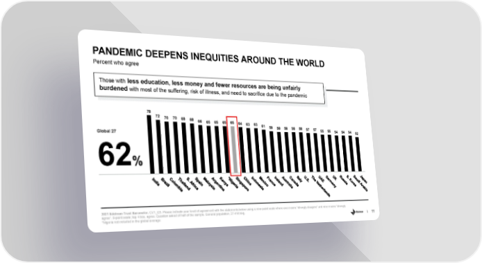 PANDEMIC DEEPENS INEQUITIES AROUND THE WORLD Percent who agree Those with less education, less money and fewer resources are being unfairly burdenedwith most of the suffering, risk of illness, and need to sacrifice due to the pandemic 78 72 70 70 69 68 66 65 65 65 65 64 63 63 61 59 58 58 58 58 57 57 55 55 54 54 54 52 Global 27 62% 2021 Edelman Trust Barometer. CV1_Q3. Please indicate your level of agreement with the statements below using a nine-point scale where one means “strongly disagree” and nine means “strongly agree”. 9-point scale; top 4 box, agree. Question asked of half of the sample. General population, 27-mkt avg. 11 *Nigeria not included in the global average