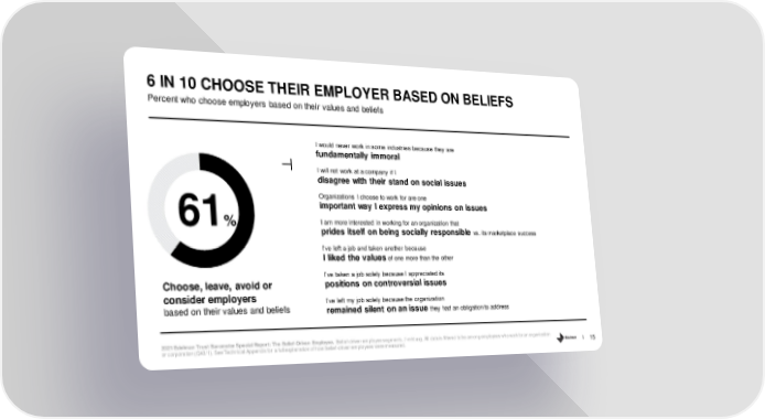 6 IN 10 CHOOSE THEIR EMPLOYER BASED ON BELIEFS Percent who choose employers based on their values and beliefs I would never work in some industries because they are fundamentally immoral I will not work at a company if I disagree with their stand on social issues Organizations I choose to work for are one important way I express my opinions on issues 61% I am more interested in working for an organization that prides itself on being socially responsible vs. its marketplace success I’ve left a job and taken another because I liked the values of one more than the other I’ve taken a job solely because I appreciated its Choose, leave, avoid or positions on controversial issues consider employers based on their values and beliefs I’ve left my job solely because the organization remained silent on an issue they had an obligation to address 2021 Edelman Trust Barometer Special Report: The Belief-Driven Employee. Belief-driven employee segments. 7-mkt avg. All data is filtered to be among employees who work for an organization or corporation (Q43/1). See Technical Appendix for a full explanation of how belief-driven employees were measured. 15