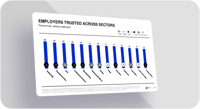EMPLOYERS TRUSTED ACROSS SECTORS Percent trust, among employees - 0 + Distrust Neutral Trust Change, Jan 2020 to Aug 2021 86 84 83 82 81 79 79 77 77 75 72 72 70 -2 -3 n/a -2 -3 n/a n/a +4 -3 +2 n/a +2 -4 2021 Edelman Trust Barometer Special Report: The Belief-Driven Employee. TRU_INS. [YOUR EMPLOYER] Below is a list of institutions. For each one, please indicate how much you trust that institution to do what is right. 9-point scale; top 4 box, trust. “Your employer” asked among those who are employed (Q43/1). 7-mkt avg., among those employed in each sector (Q420/1-18). All data is filtered to be among employees who work for an organization or corporation (Q43/1). *CPG, Telecommunications, Energy, and Automotive all have too low of a basesize (less than 100) to report the Jan 2020 data. 39