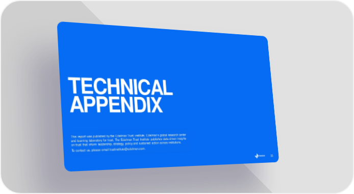 TECHNICAL APPENDIX This report was published by the Edelman Trust institute, Edelman’s global research center and learning laboratory for trust. The Edelman Trust Institute publishes data - driven insights on trust that inform leadership, strategy, policy and sustained action across institutions. To contact us, please email trustinstitute@edelman.com . 33